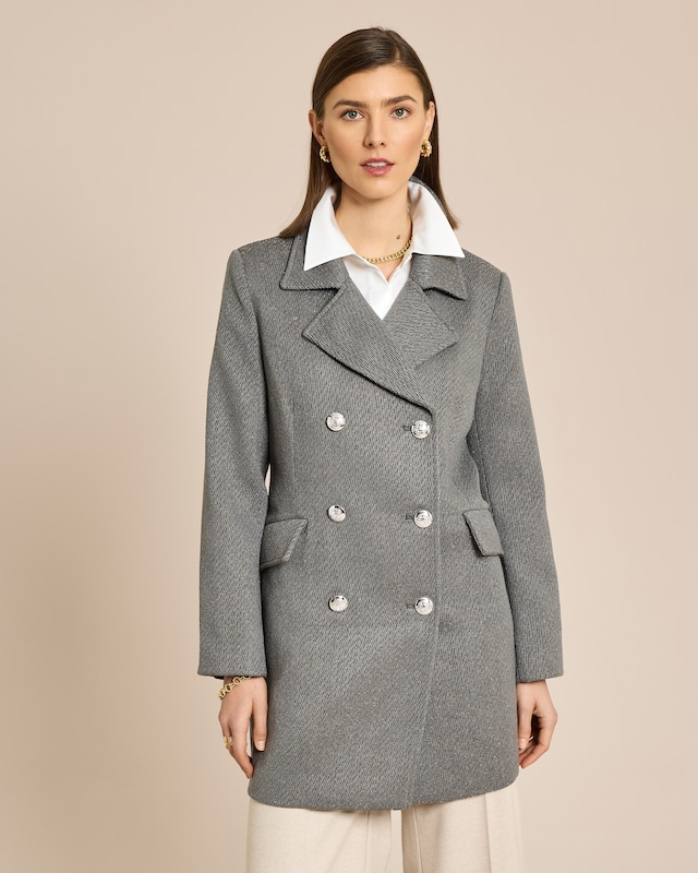 Zeitloser Übergangsmantel mit edlen Details