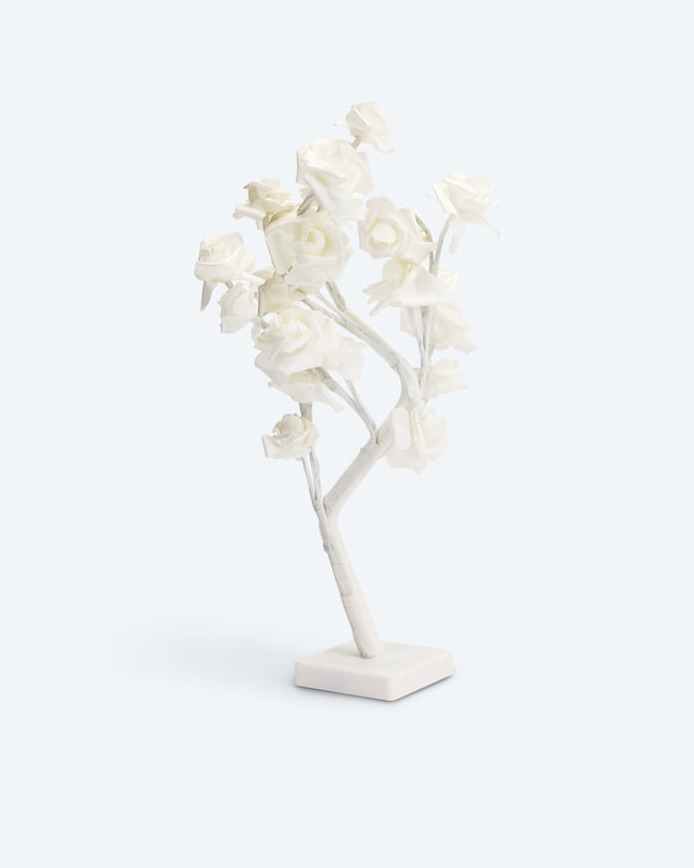 Ein entzückendes, großes Licht-Objekt für Ihre Wohnräume: Das Bäumchen ist mit 24 künstlichen Rosenblüten bestückt. Die Kunststoff-Blüten haben eine weiche, samtartige Haptik. Die Zweige können Sie selbst nach Lust und Laune zurechtbiegen, so erhält Ihr Bäumchen eine individuelle Optik. Ausgestattet mit 24 warmweißen LEDs sowie einer praktischen 6-Stunden-Timerfunktion, die für Sie das An- und Ausschalten übernimmt. Außerdem mit zwei Leuchtfunktionen, Dauerlicht oder Funkeln. Drei AA Batterien sind inklusive, Sie können Ihr LED-Rosenbäumchen also sofort aufstellen und starten.