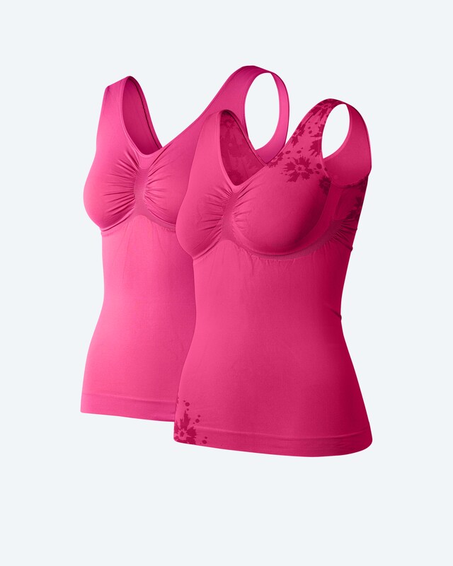 Lassen Sie Ihre natürliche Schönheit strahlen. Diese Leichttops der Schlankstütz Kollektion Classic umarmen Ihre Kurven mit sanfter Stützkraft und formen dezent Ihre Silhouette. Das besonders weiche Material schmiegt sich angenehm an Ihre Haut und bietet einen leichten, aber spürbaren Shaping-Effekt. Im praktischen Doppelpack erhalten Sie ein unifarbenes Top und eines mit einem dezenten, eingestrickten Blütendesign - perfekt für jeden Anlass. Der Rundhalsausschnitt und die breiten Träger sorgen für bequemen Halt. Diese vielseitigen Basics sind Ihre neuen treuen Begleiter im Alltag und lassen Sie sich rundum wohlfühlen.