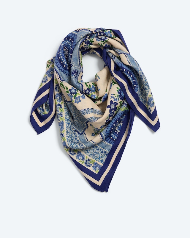 Lassen Sie sich von diesem exquisiten Tuch verzaubern. Das quadratische Format von 80x80 cm umschmeichelt Ihren Hals mit einer edlen Mischung aus Wolle und Seide. Die zweifarbige Umrandung verleiht dem Accessoire eine besondere Note und macht es zum vielseitigen Begleiter für jeden Anlass. Ob als stilvoller Akzent zum Blazer oder als wärmender Schutz an kühlen Abenden – dieses Tuch mit Druck ist Ihr neuer Liebling für zeitlose Eleganz.
