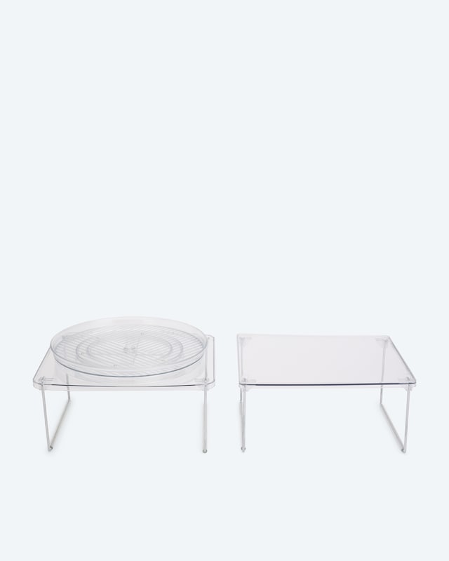 Sie wünschen sich mehr Platz und Übersicht in Ihrem Schrank? Das zweiteilige Schrankkarussell mit zusätzlichem Regal aus hochwertigem Kunststoff ist die ideale Lösung. Mit einem klappbaren Gestell inklusive drehbarem Tablett sowie dem weiteren klappbaren Gestell erweitern Sie Ihre Schrankfläche im Handumdrehen. Es hilft, alle Dinge ordentlich und übersichtlich zu verstauen. Dank des einfachen Designs ist es mühelos anzubringen und ebenso leicht wieder zu entfernen. Das antibakterielle Material sorgt für hygienische Aufbewahrung. Bringen Sie Struktur in Ihren Alltag und nutzen Sie Ihren Stauraum optimal.
