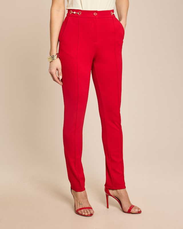 Lassen Sie Ihren Alltag in neuem Glanz erstrahlen. Diese Hose mit Zierelement vereint Komfort und Stil mühelos. Der Ponte di Roma-Stoff schmiegt sich angenehm an Ihre Haut, während die konische Form Ihre Figur elegant betont. Beidseitige dekorative Elemente am Bund und Biesen vorne und hinten setzen raffinierte Akzente. Mit praktischen Eingriffstaschen und einer Innenbeinlänge von ca. 76 cm in Größe 38 ist sie der perfekte Begleiter für jede Gelegenheit. Ihr neues Lieblingsteil für zeitgemäße Eleganz.