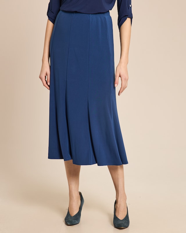 Fließender Midi-Rock mit Godet-Einsätzen