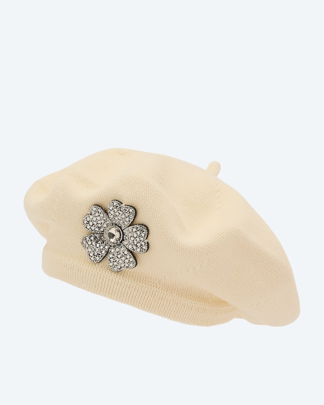 Stilvolle Baskenmütze mit funkelnder Blumenbrosche