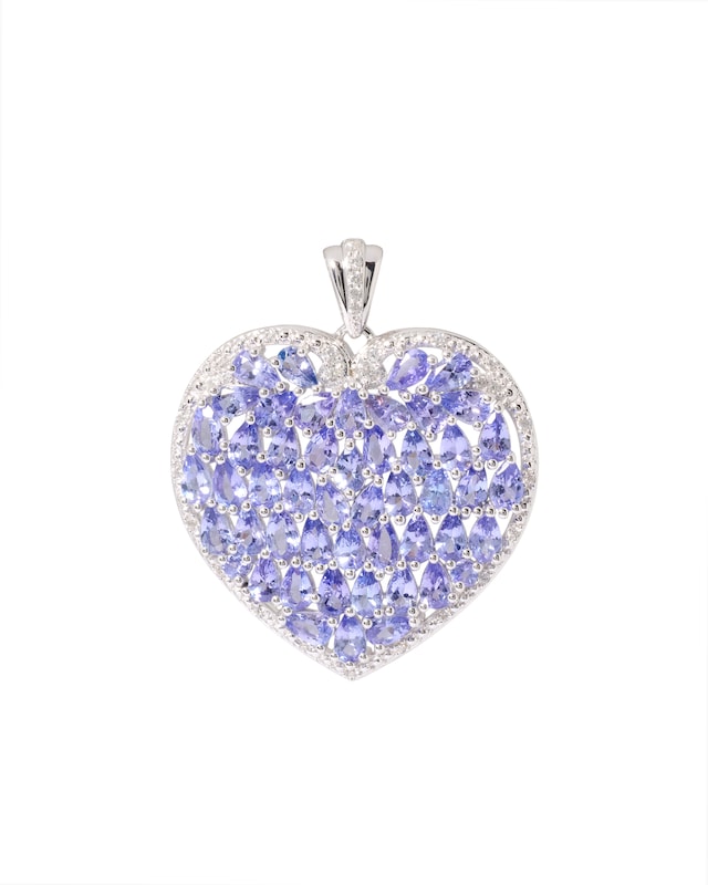 Lassen Sie Ihr Herz höher schlagen mit diesem atemberaubenden Anhänger von Harry Ivens. Ein Meer aus 50 funkelnden Tansaniten in exquisiter AAA+-Qualität bildet ein romantisches Herz, das Ihren Hals in einem zarten Blauviolett umschmeichelt. Die edlen Steine sind meisterhaft in hochglanzpoliertes, rhodiniertes Sterlingsilber 925 gefasst, was ihren Glanz noch verstärkt. Der größte Tansanit im Tropfenschliff misst beeindruckende 5,0 x 5,3 mm und wird von 49 weiteren facettierten Steinen in verschiedenen Größen umrahmt. Mit einer Gesamtgröße von ca. 4,10 x 3,37 cm ist dieser Anhänger ein wahrhaft majestätisches Statement-Stück. Die Öse mit einem Innendurchmesser von ca. 4,15 x 2,11 mm ermöglicht das einfache Einfädeln Ihrer Lieblingskette. Dieser Anhänger ist nicht nur ein Schmuckstück, sondern ein Kunstwerk, das die Schönheit der Natur einfängt und Ihren persönlichen Stil auf einzigartige Weise zum Ausdruck bringt.