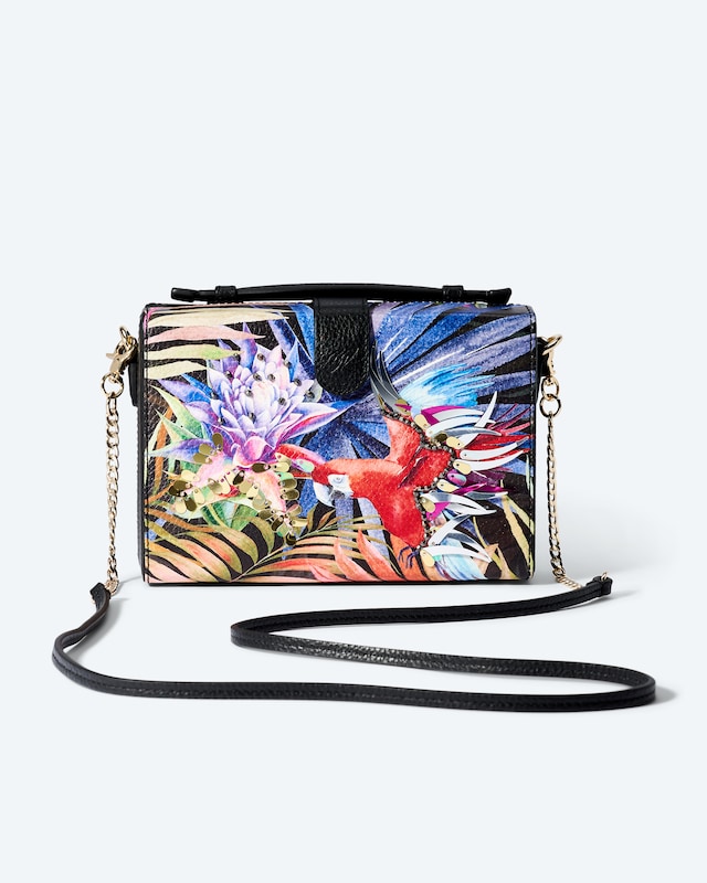 Ihre neue Lieblingsbegleiterin wartet darauf, jeden Tag ein bisschen funkelnder zu machen. Diese Umhängetasche vereint praktisches Design mit bezaubernden Details, die sofort ins Auge fallen. Der dekorative Druckmix auf der Vorderseite wird durch glänzende Paillettenverzierungen veredelt, während die Rückseite schlicht gehalten ist. Der Magnetverschluss ermöglicht schnellen Zugriff auf Ihre wichtigsten Dinge. Dank des abnehmbaren Riemens mit Kette und Karabiner tragen Sie die Tasche wahlweise über der Schulter oder nutzen den kleinen Trageriemen für spontane Momente. Im Innenfach finden zwei Kartenfächer Platz für Ihre Karten. Ob zum Einkaufsbummel, Café-Besuch oder Spaziergang – diese Tasche passt sich mühelos Ihrem Rhythmus an. Lassen Sie sich von diesem vielseitigen Accessoire begleiten, das Funktionalität mit einem Hauch Glamour verbindet.