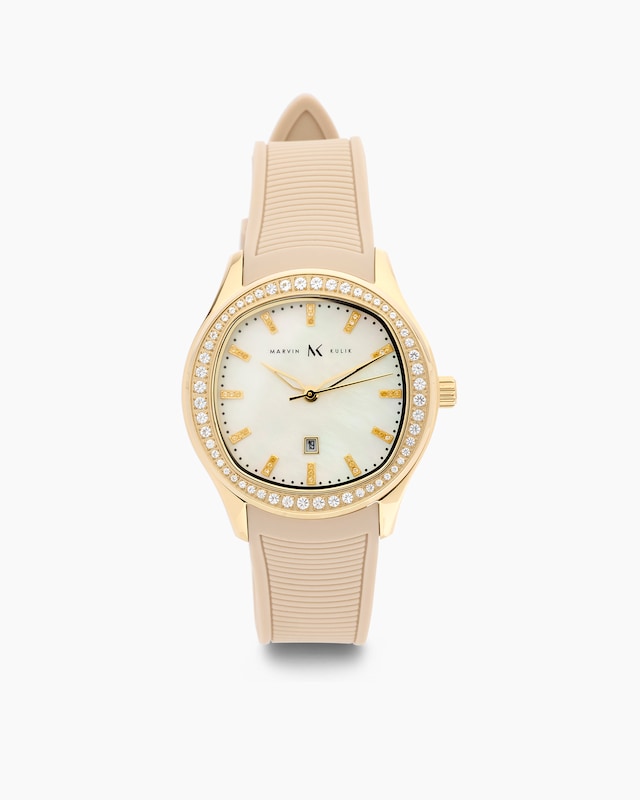 Elegante Damenuhr mit Silikonband und Topasen