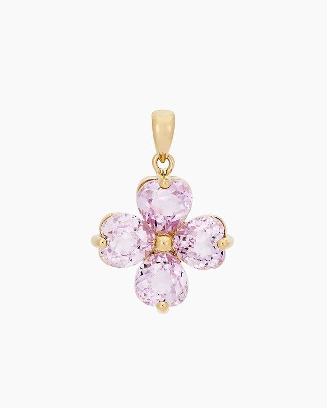 Lassen Sie sich von der zarten Schönheit dieses Anhängers verzaubern! Wie eine blühende Blume entfaltet sich ein Quartett aus herzförmigen Kunziten vor Ihren Augen. Die vier facettierten Edelsteine in zartem Rosa schmiegen sich in eine elegante Fassung aus hochglanzpoliertem Gold 375. Mit einem Gesamtgewicht von ca. 3,40 Karat verleihen die natürlichen Kunzite dem Anhänger eine beeindruckende Präsenz. Die Krappenfassung hält die kostbaren Steine sicher und lässt gleichzeitig viel Licht einfallen, wodurch ein faszinierendes Funkeln entsteht. Mit einer Größe von ca. 22 x 15 mm ist der Anhänger ein echter Blickfang, der dennoch nicht aufdringlich wirkt. Die Öse mit den Maßen 3,7 x 2,3 mm ermöglicht das einfache Einfädeln in Ihre Lieblingskette. Ob als Geschenk oder Verwöhnung für Sie selbst - dieser Anhänger von Sogni d'oro ist ein Schmuckstück, das die Herzen höher schlagen lässt.