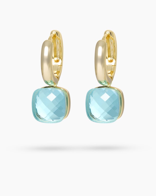 Lassen Sie sich von der leuchtenden Farbbrillanz verzaubern und setzen Sie auf ein Accessoire, das Ihren Look mit spielerischer Eleganz bereichert. Diese Ohrhänger von Claris Vienna Jewelry Art verbinden modernes Design mit zeitloser Raffinesse und sind ein echter Hingucker für jeden Anlass. Das hochglanzpolierte Messing ist wahlweise gelbvergoldet oder rosévergoldet und bildet die perfekte Fassung für die facettierten Glassteine in Kissenform. Die Steine messen ca. 10 x 10 mm und sind in verschiedenen Farben erhältlich: strahlendes Aqua, klares Weiß oder warmes Apricot. Jede Variante besticht durch ihr individuelles Farbspiel und verleiht Ihrem Outfit eine besondere Note. Der praktische Klappverschluss sorgt für sicheren Halt und angenehmen Tragekomfort. Mit einer Länge von ca. 2,5 cm schmeicheln diese Ohrhänger Ihrer Gesichtslinie und setzen stilvolle Akzente. Was die Qualität unserer Schmuckstücke angeht, gehen wir keine Kompromisse ein. Aus diesem Grund werden unsere Schmuckwaren von unserer Qualitätssicherung und seitens des Lieferanten strengsten Prüfprozessen unterzogen. Unter anderem beinhalten unsere Prüfprozesse Prüfungen auf Konformität mit den Bestimmungen der Schweizer Edelmetallkontrollgesetzgebung. Ein Schmuckstück, das Ihre Persönlichkeit unterstreicht und Sie bei jedem Auftritt strahlen lässt.