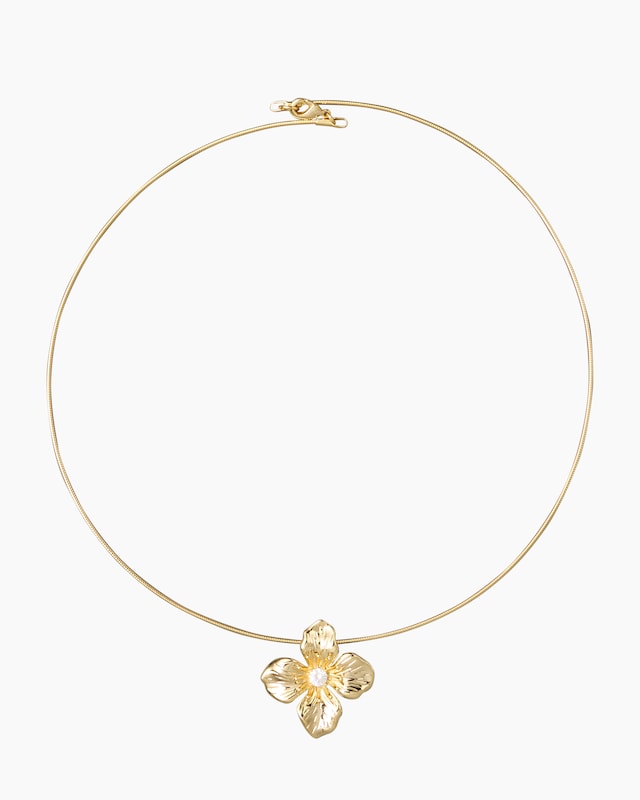 Zarte Blütenpracht trifft auf zeitlose Eleganz – dieser Omegareif mit Anhänger ist ein wahres Schmuckstück für Liebhaberinnen floraler Designs. Der filigrane Blüten-Anhänger aus hochglanzpoliertem Messing besticht durch seine detailreiche Struktur und wird von einem facettierten Zirkonia in der Mitte gekrönt, der das Licht wunderschön einfängt. Der runde Zirkonia ist in einer Krappenfassung sicher gehalten und verleiht dem Schmuckstück einen Hauch von Brillanz. Der Anhänger misst 27 x 26 mm und ist damit ein ausdruckstarker Blickfang an Ihrem Dekolleté. Der elegante Omegareif mit einer Länge von ca. 43 cm und einer Stärke von 0,8 mm schmiegt sich sanft an Ihren Hals und unterstreicht Ihre feminine Ausstrahlung. Verschlossen wird das Schmuckstück mit einem praktischen Karabiner, der für sicheren Halt sorgt. Wählen Sie zwischen zwei edlen Varianten: vergoldet für einen warmen, luxuriösen Glanz oder palladiniert für einen kühlen, modernen Look. Beide Ausführungen überzeugen durch ihre hochwertige Verarbeitung und ihren zeitlosen Charme. Ob im Alltag oder zu besonderen Anlässen – dieser Omegareif mit Blüten-Anhänger ist ein vielseitiges Accessoire, das Ihren persönlichen Stil perfekt unterstreicht. Was die Qualität unserer Schmuckstücke angeht, gehen wir keine Kompromisse ein. Aus diesem Grund werden unsere Schmuckwaren von unserer Qualitätssicherung und seitens des Lieferanten strengsten Prüfprozessen unterzogen. Unter anderem beinhalten unsere Prüfprozesse Prüfungen auf Konformität mit den Bestimmungen der Schweizer Edelmetallkontrollgesetzgebung. Ein Schmuckstück, das Ihre natürliche Schönheit zum Strahlen bringt!