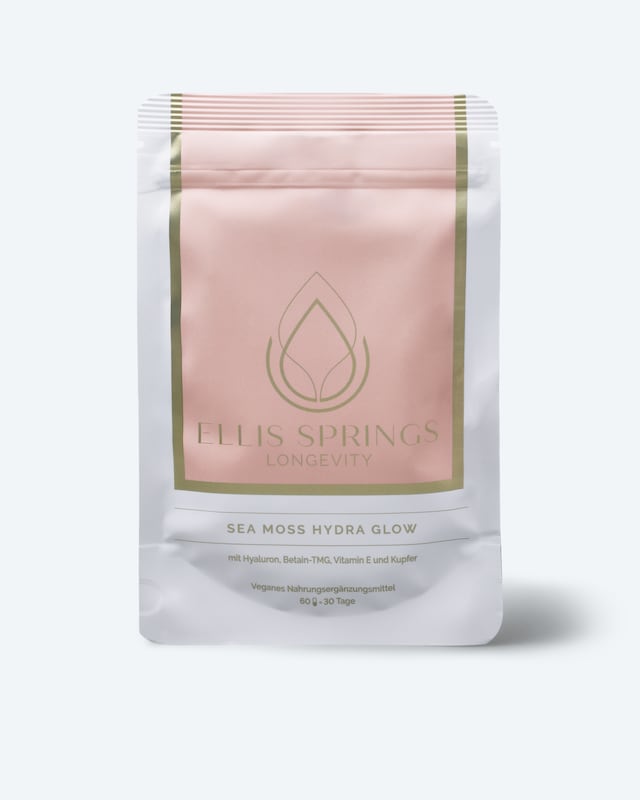 Sea Moss Hydra Glow ist ein rein veganes Nahrungsergänzungsmittel mit Kupfer zur Unterstützung der Haut und zur Erhaltung von normalem Bindegewebe. Außerdem mit Hyaluronsäure, Irisch See Moos, Vitamin E und Betain-TMG. Sie erhalten hier beste Apothekerqualität, hergestellt in Deutschland. Umgesetzt nach den Maßstäben der "Holistic Clean Formula", also ohne unnötige Zusätze.