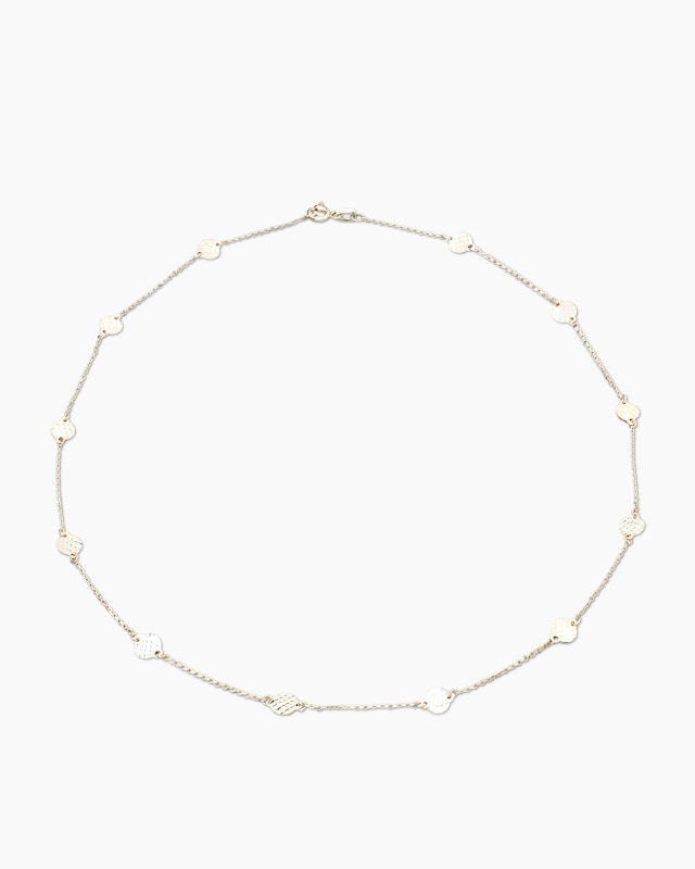 Zeitlose Eleganz trifft auf raffinierte Details – diese Kette vereint klassisches Design mit modernem Charme. Die feine Forzatina-Kette aus Gold 585 wird durch flache, runde Elemente mit Diamantschliff akzentuiert, die bei jedem Lichteinfall dezent funkeln und der Kette eine besondere Lebendigkeit verleihen. Die diamantierte Verarbeitung sorgt für ein faszinierendes Lichtspiel und macht dieses Schmuckstück zu einem echten Hingucker. Mit ihrem zeitlosen Design lässt sich die Kette vielseitig kombinieren – ob im Alltag oder zu besonderen Anlässen. Der sichere Federringverschluss garantiert einen komfortablen Tragekomfort. Erhältlich in drei verschiedenen Längen, passt sich diese elegante Goldkette perfekt Ihrem individuellen Stil an. Was die Qualität unserer Schmuckstücke angeht, gehen wir keine Kompromisse ein. Aus diesem Grund werden unsere Schmuckwaren von unserer Qualitätssicherung und seitens des Lieferanten strengsten Prüfprozessen unterzogen. Unter anderem beinhalten unsere Prüfprozesse Prüfungen auf Konformität mit den Bestimmungen der Schweizer Edelmetallkontrollgesetzgebung. Ein Schmuckstück, das durch seine schlichte Raffinesse überzeugt und Sie jeden Tag aufs Neue begleitet.
