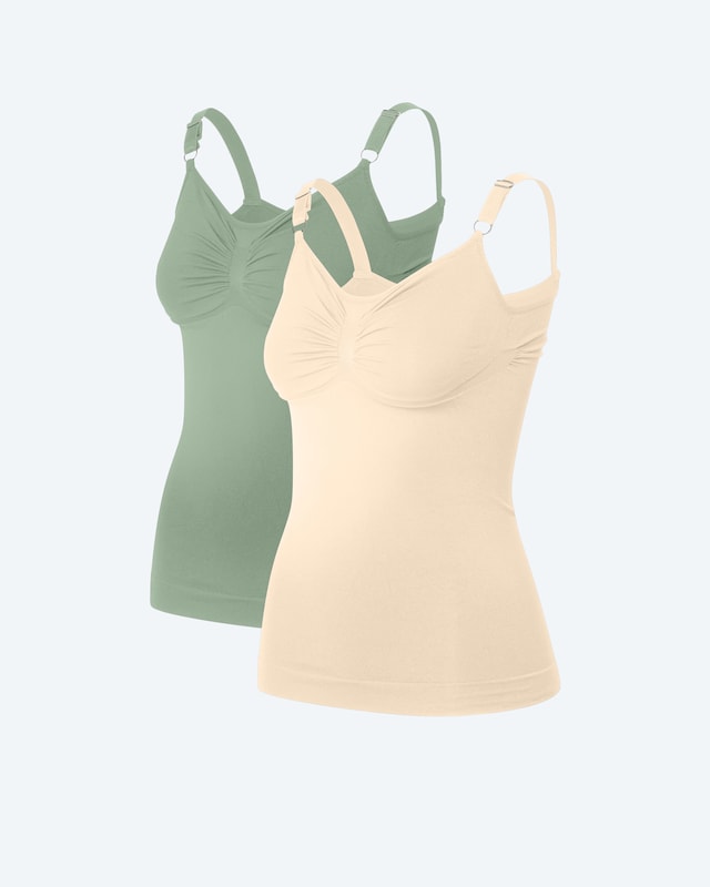 Mit diesen beiden Leichttops aus der Schlankstütz Kollektion zaubern Sie im Handumdrehen eine schöne und glatte Silhouette. Das Set enthält zwei Tops aus seidenweichem, leicht stützendem Material mit integrierter Push-up-Zone, Komfortträgern und kombistarkem Rundhalsausschnitt. Für optimalen Tragekomfort sind die Spaghetti-Träger etwas breiter geschnitten und individuell verstellbar. Weiteres Highlight: Die beiden Leichttops sind mit einer antibakteriellen Ausstattung versehen, die geruchshemmend wirkt. Ganz nebenbei müssen die Tops dadurch nicht so oft gewaschen werden, was Wasser und Energie spart. Jedes Set enthält zwei verschiedene Farbvarianten, die sich vielseitig kombinieren lassen und sich perfekt in Ihre Garderobe fügen werden.
