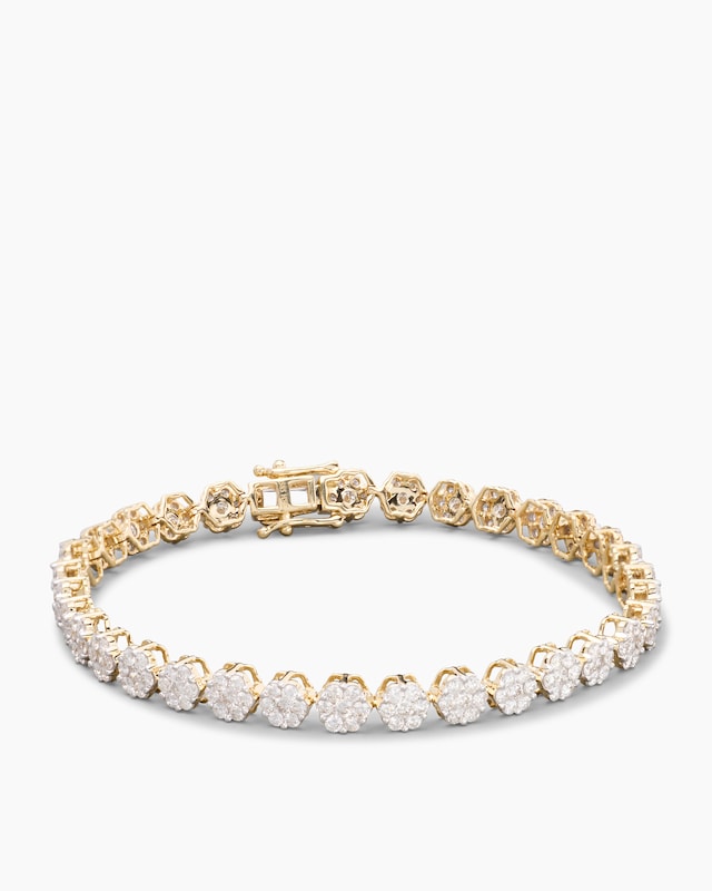 Wenn Luxus auf zeitlose Eleganz trifft, entsteht ein Schmuckstück, das Ihre Persönlichkeit auf unvergleichliche Weise unterstreicht und jeden Auftritt zu etwas Besonderem macht. Dieses exquisite Brillant-Armband aus der Diamond Collection vereint 231 funkelnde Brillanten mit einem Gesamtgewicht von ca. 5,00 ct in einem Design, das pure Raffinesse ausstrahlt. Jeder einzelne Brillant im Brillantschliff ist in hochglanzpoliertem Gold 585 in Krappenfassung gefasst und strahlt in der Reinheit P1. Das warme Leuchten des Edelmetalls harmoniert perfekt mit dem brillanten Feuer der Diamanten und kreiert so ein Accessoire der absoluten Luxusklasse. Teilweise rhodiniert sorgt das Armband für zusätzliche Kontraste und einen modernen Touch. Mit einer Länge von ca. 19 cm schmiegt es sich elegant um Ihr Handgelenk, während das sichere Kastenschloss mit zwei Sicherheitsachten für perfekten Halt sorgt. Das mitgelieferte Diamond Collection Zertifikat bestätigt zudem die exzellente Beschaffenheit der Edelsteine. Was die Qualität unserer Schmuckstücke angeht, gehen wir keine Kompromisse ein. Aus diesem Grund werden unsere Schmuckwaren von unserer Qualitätssicherung und seitens des Lieferanten strengsten Prüfprozessen unterzogen. Unter anderem beinhalten unsere Prüfprozesse Prüfungen auf Konformität mit den Bestimmungen der Schweizer Edelmetallkontrollgesetzgebung. Ein Meisterwerk der Goldschmiedekunst, das Ihren Stil mit unvergänglicher Brillanz krönt.