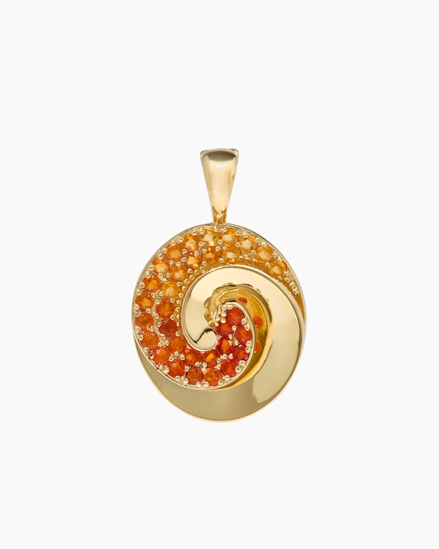 Wie ein Feuerwerk der Farben entfaltet sich die Schönheit dieses außergewöhnlichen Clipanhängers und verleiht Ihrem Look eine faszinierende Lebendigkeit. Das spiralförmige Design aus hochglanzpoliertem, vergoldetem Sterlingsilber 925 bildet die perfekte Bühne für 32 facettierte Feueropale, die mit einem Gesamtgewicht von ca. 0,77 ct in Krappenfassung gehalten werden. Die natürlichen Edelsteine aus Mexiko begeistern mit ihrem charakteristischen Farbspiel und verleihen dem Schmuckstück eine unverwechselbare Ausstrahlung. Der praktische Clipverschluss ermöglicht es Ihnen, den Anhänger mühelos an verschiedenen Ketten zu befestigen und so immer wieder neu zu kombinieren. Mit einer Größe von ca. 30,79 x 19,42 mm setzt dieser Anhänger aus der Terra Opalis Linie von Sogni d'oro ein stilvolles Statement. Ein Schmuckstück, das die Faszination natürlicher Edelsteine mit zeitgemäßem Design vereint und Sie bei jedem Anlass strahlen lässt. Was die Qualität unserer Schmuckstücke angeht, gehen wir keine Kompromisse ein. Aus diesem Grund werden unsere Schmuckwaren von unserer Qualitätssicherung und seitens des Lieferanten strengsten Prüfprozessen unterzogen. Unter anderem beinhalten unsere Prüfprozesse Prüfungen auf Konformität mit den Bestimmungen der Schweizer Edelmetallkontrollgesetzgebung. Hinweis: Die abgebildete Kette ist nicht im Lieferumfang enthalten. Eine passende Halskette zu diesem Anhänger finden Sie im Kettensortiment von HSE.
