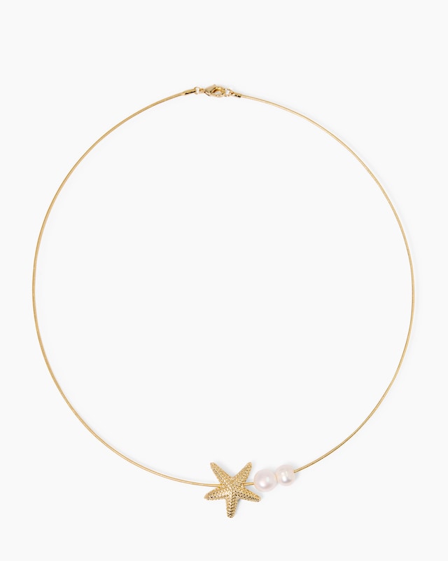 Lassen Sie sich von der Leichtigkeit des Meeres verzaubern und tragen Sie ein Stück Urlaubsfeeling direkt am Hals. Dieser elegante Omegareif aus hochglanzpoliertem Messing verbindet maritimes Flair mit zeitloser Eleganz. Der detailreich gestaltete Seestern-Anhänger in einer Größe von 31 x 29 mm bildet das Herzstück dieses bezaubernden Schmuckstücks und wird von zwei schimmernden Süßwasserzuchtperlen begleitet. Die Perlen mit einer Größe von 7 mm bzw. 8,5 mm setzen einen natürlichen Akzent und unterstreichen die maritime Ästhetik des Designs. Der Omegareif schmiegt sich mit seiner flexiblen Form angenehm an Ihren Hals und sorgt für einen komfortablen Tragekomfort. Mit einem praktischen Karabinerverschluss lässt sich das Collier sicher verschließen. Zur Wahl stehen Ihnen zwei edle Varianten: vergoldet für einen warmen, sonnigen Glanz oder palladiniert für einen kühlen, silbrigen Schimmer. Beide Ausführungen verleihen Ihrem Look eine besondere Note und lassen sich vielseitig kombinieren – ob zu lässigen Sommeroutfits oder eleganten Abendkleidern. Ein Accessoire, das Urlaubserinnerungen weckt und Ihren Stil mit maritimer Eleganz bereichert. Was die Qualität unserer Schmuckstücke angeht, gehen wir keine Kompromisse ein. Aus diesem Grund werden unsere Schmuckwaren von unserer Qualitätssicherung und seitens des Lieferanten strengsten Prüfprozessen unterzogen. Unter anderem beinhalten unsere Prüfprozesse Prüfungen auf Konformität mit den Bestimmungen der Schweizer Edelmetallkontrollgesetzgebung. Entdecken Sie mit diesem Omegareif ein Schmuckstück, das Natürlichkeit und Eleganz auf unvergleichliche Weise vereint.