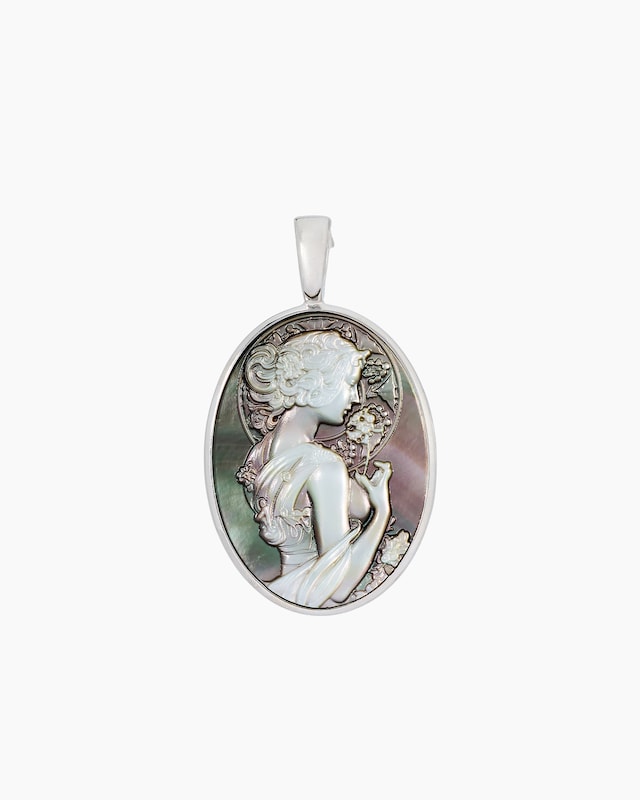 - Elegante Perlmutt-Kamee mit kunstvoll graviertem Motiv