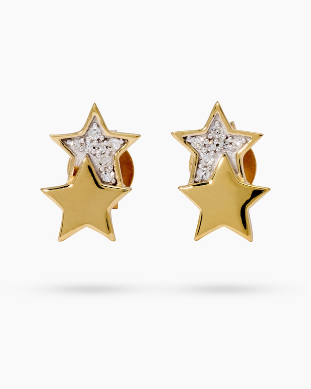 Lassen Sie Ihre Persönlichkeit strahlen wie die Sterne am Himmel – mit diesen bezaubernden Ohrsteckern, die Eleganz und Verspieltheit auf einzigartige Weise vereinen. Diese Diamant-Ohrstecker aus der Kollektion von Diajeune™ sind ein wahres Schmuckstück für alle, die das Besondere lieben. Jeder Ohrstecker besteht aus zwei übereinander angeordneten Sternen: Während der untere Stern in hochglanzpoliertem, gelbvergoldetem Sterlingsilber 925 erstrahlt, ist der obere Stern mit insgesamt 14 funkelnden Diamanten besetzt. Die Diamanten im Achtkantschliff haben die Reinheit P1 und ein Gesamtgewicht von ca. 0,05 ct. Sie sind in Krappenfassungen gehalten und werden durch die teilweise rhodinierte Oberfläche zusätzlich in Szene gesetzt. Das verspielte Stern-Design verleiht diesen Ohrsteckern eine moderne, jugendliche Note und macht sie zum perfekten Begleiter für jeden Tag. Der sichere Verschluss mit Ohrmutter sorgt dafür, dass die Ohrstecker jederzeit fest und bequem sitzen. Der Name Diajeune steht für echten Diamantschmuck in Silber, verarbeitet in einer Vielfalt von jungen, modernen und trendbewussten Designs. Schmuck, der jeden Tag aufs Neue Freude bringt. Was die Qualität unserer Schmuckstücke angeht, gehen wir keine Kompromisse ein. Aus diesem Grund werden unsere Schmuckwaren von unserer Qualitätssicherung und seitens des Lieferanten strengsten Prüfprozessen unterzogen. Unter anderem beinhalten unsere Prüfprozesse Prüfungen auf Konformität mit den Bestimmungen der Schweizer Edelmetallkontrollgesetzgebung. Ein funkelndes Statement, das Ihren Look auf charmante Weise vervollständigt und Sie zum Strahlen bringt – Tag für Tag.